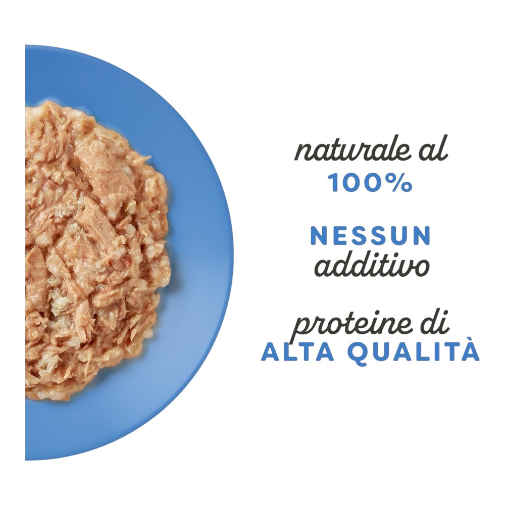 Composizione Filetto di tonno 55%, brodo di pesce, granchio 5%, riso.